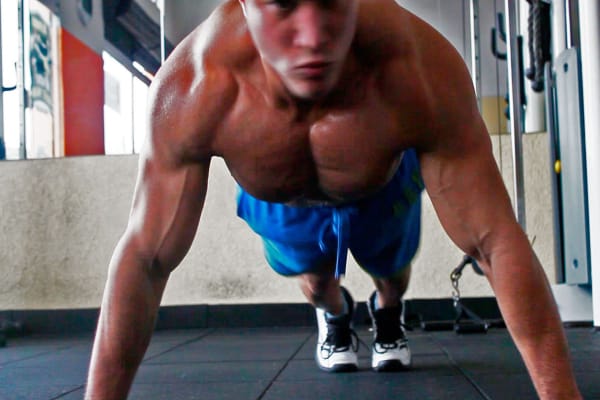 Flexões: As flexões são exercícios popularmente conhecidos e muito indicados para o fortalecimento do peitoral e dos braços. É importante que ao realizar esse exercício, os braços estejam afastados um do outro de modo a formar um ângulo de 90 graus com o cotovelo, mantenha sempre o abdômen contraído para evitar lesões na coluna.